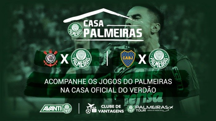 Tradicionalmente realizada para transmitir os embates em que o Palmeiras atua como visitante, a Casa Palmeiras voltará ao Quintal do Espeto, na Zona Oeste de São Paulo-SP, para proporcionar mais uma experiência única aos torcedores que querem acompanhar os confrontos decisivos com Corinthians e Boca. No local, além de um ambiente totalmente customizado com as cores do clube, haverá presença de ex-jogadores e sorteio de brindes oficiais do Alviverde.