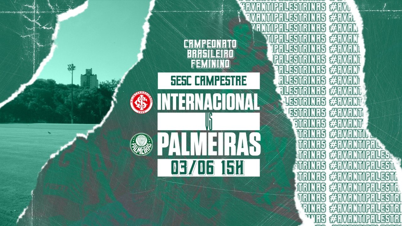 O Alviverde vai medir forças contra o Internacional nesta quinta-feira (03), às 15h, em partida válida pela 12ª rodada do Brasileiro Feminino, no SESC Campestre, em Porto Alegre-RS. Os palmeirenses podem acompanhar a partida ao vivo na página inicial do site do Verdão ou pela CBF TV.
