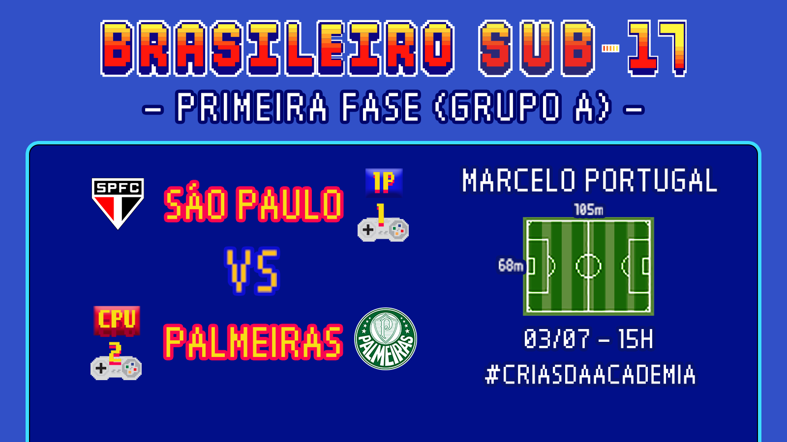 A equipe Sub-17 do Palmeiras fecha sua participação na fase de grupos do Campeonato Brasileiro da categoria neste sábado (03), às 15h, contra o São Paulo, no estádio Marcelo Portugal, em Cotia-SP. O duelo terá transmissão da CBF TV (MyCujoo) e será exibido na home do Site Oficial do Verdão.
