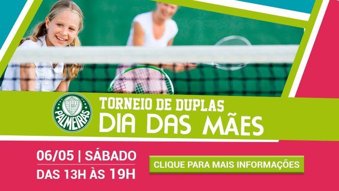 Academia de Tênis do Verdão promove torneio de duplas em homenagem ao Dia das Mães Postado em 20 de abril de 2017 - 15:35 por admin-plm. Departamento de Comunicação
