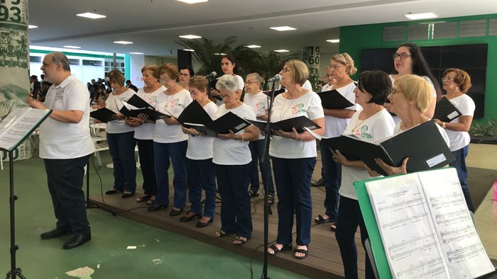 Todos os associados que passavam pelo local ou que estavam na troca de figurinhas da Panini puderam prestigiar as músicas clássicas e italianas do repertório da equipe. A música “Eu sei que vou te amar” foi a mais cantada e arrancou lágrimas dos associados.