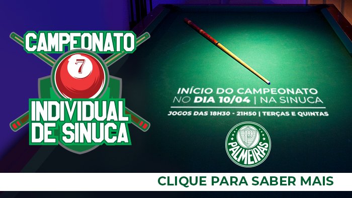 Verdão promove campeonato individual de sinuca para associados Postado em 16 de março de 2018 - 18:11 por admin-plm. Departamento de Comunicação