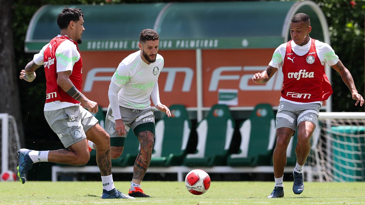 O Palmeiras treinou na manhã desta segunda-feira (15), na Academia de Futebol, e deu sequência à pré-temporada de 2024 com atividades técnicas e táticas no gramado. De volta das férias em Portugal, o treinador Abel Ferreira foi a principal novidade e comandou o treino após uma reunião com jogadores e comissão no auditório do centro de excelência.