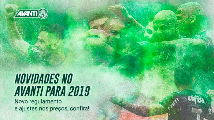 Referência entre projetos de sócio-torcedor no Brasil, o Avanti segue aperfeiçoando e adaptando suas regras para melhor atender os torcedores palmeirenses. Em 2019, o regulamento do programa será modificado e oferecerá ao sócio a possibilidade de realizar o pagamento anual de sua assinatura, com a opção de parcelar o valor total em até quatro vezes no cartão de crédito. O sócio que escolher a nova forma de quitar as mensalidades ainda no mês de janeiro terá como benefício 10% de desconto no preço do plano escolhido.