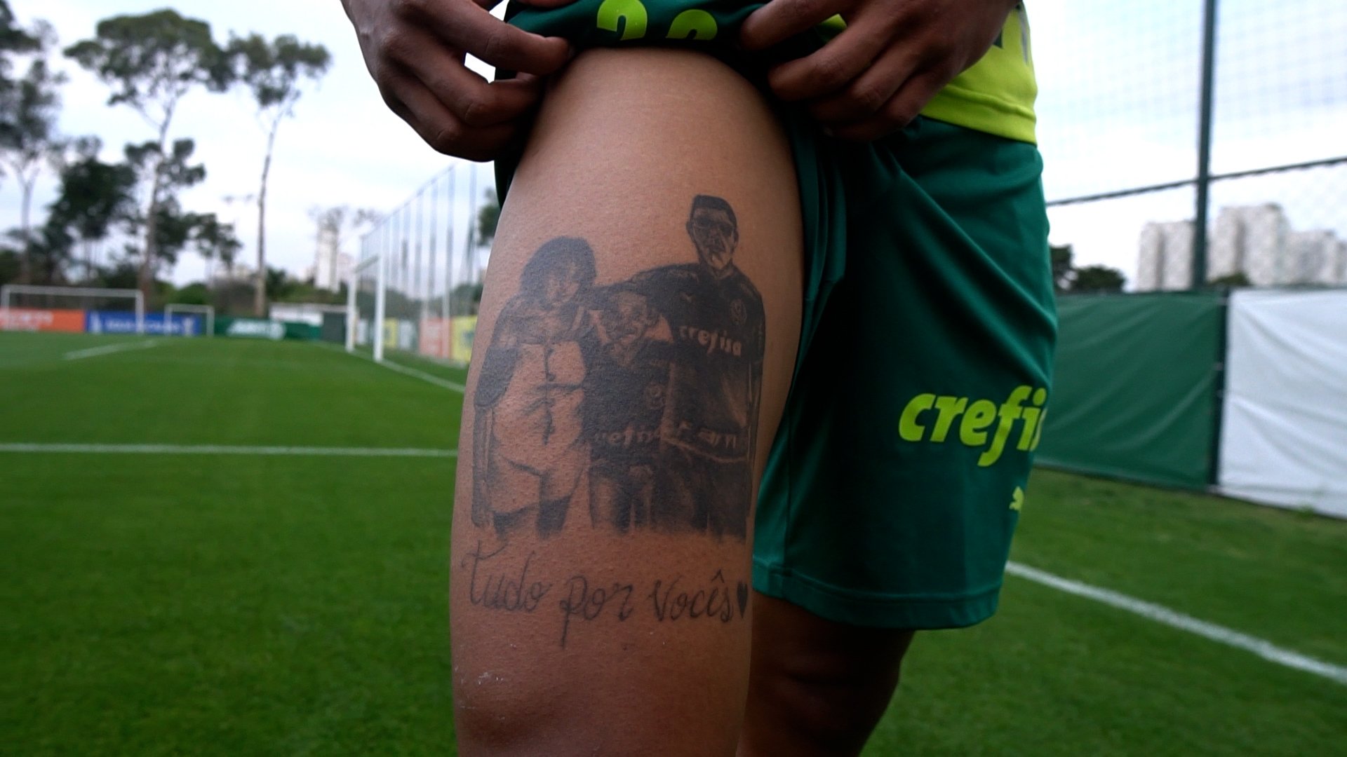 Danilo fez uma tatuagem em homenagem à família (Foto: TV Palmeiras/Reprodução)