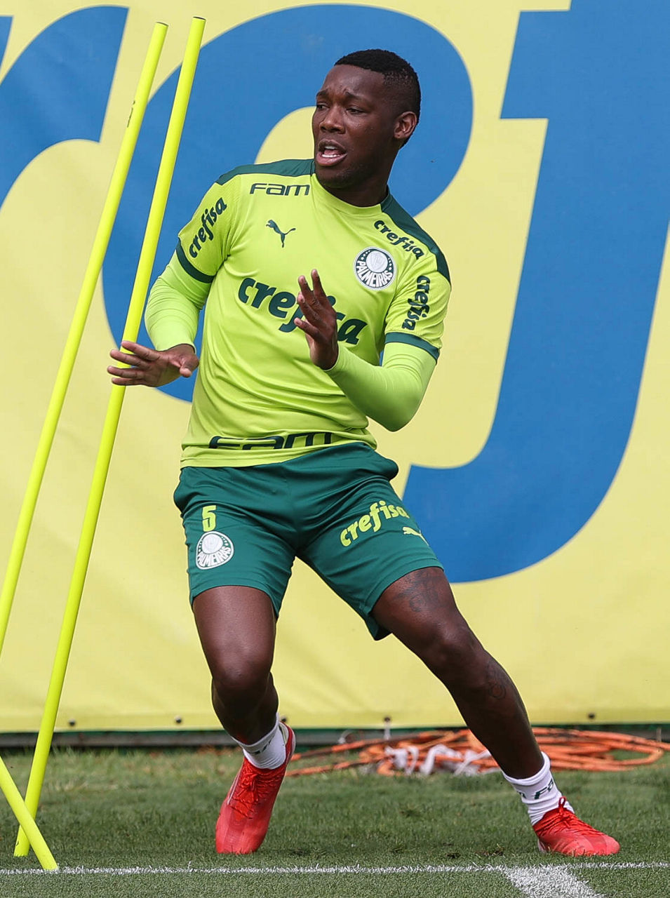 A comissão técnica de Abel Ferreira, após aquecimento, comandou um trabalho técnico em dimensões reduzidas com duas equipes. Uma das ênfases foi usar a profundidade e os cruzamentos para a área por conta dos ‘curingas’, posicionados nas extremidades do campo.