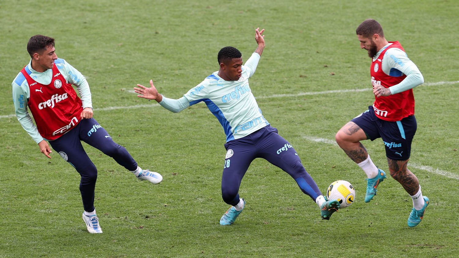O Palmeiras deu sequência na manhã desta sexta-feira (16), na Academia de Futebol, à preparação para o duelo com o Santos, no domingo (18), às 18h30, no Allianz Parque, pela 27ª rodada do Campeonato Brasileiro. Abel Ferreira e seus auxiliares comandaram atividades técnicas e táticas em dimensões reduzidas com ênfases em transições, movimentações e construções de jogadas. Na parte final, alguns atletas ensaiaram faltas, outros realizaram complementos físicos e outros ainda aprimoraram bolas paradas.