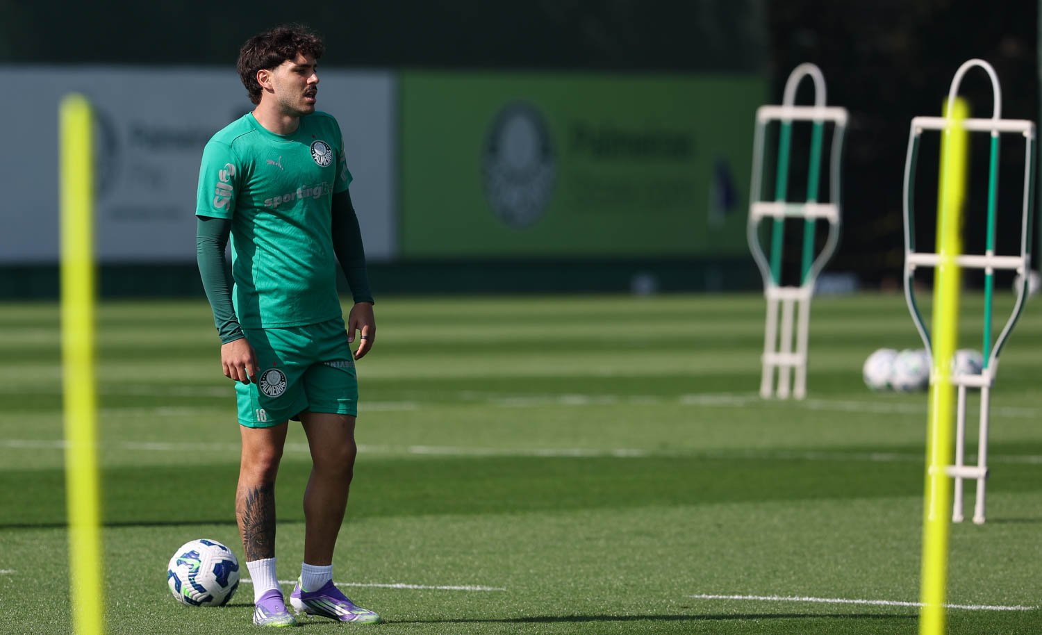 O Palmeiras deu sequência, na manhã desta segunda-feira (14), na Academia de Futebol, à preparação para o duelo com o Mirassol, na quarta (16), às 19h, no Allianz Parque, pela 14ª rodada do Campeonato Brasileiro. Após ativação muscular, o elenco aperfeiçoou conceitos táticos como saídas de bola, marcações e movimentações específicas com a ajuda de estacas no gramado. Na parte final, houve um trabalho técnico de 11 jogadores contra 11 em dimensões reduzidas, além de um aprimoramento de jogadas ensaiadas defensivas (com o auxiliar Carlos Martinho) e ofensivas (com Vitor Castanheira).