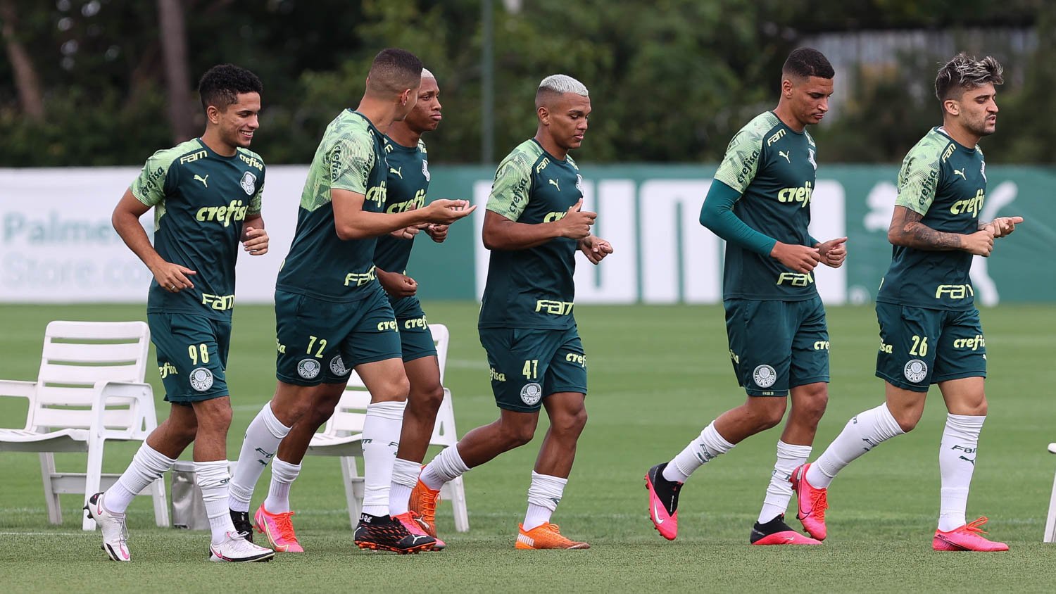 A principal novidade foi a presença de Gabriel Veron. O atacante, que realizou trabalhos específicos à parte nos últimos dias, participou do treino recreativo ao lado dos companheiros e, na sequência, fez um complemento físico acompanhado dos preparadores do Palmeiras. Em transição, o zagueiro Emerson Santos cumpriu um cronograma interno.