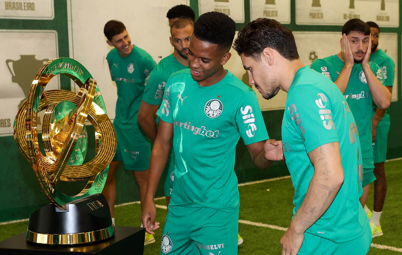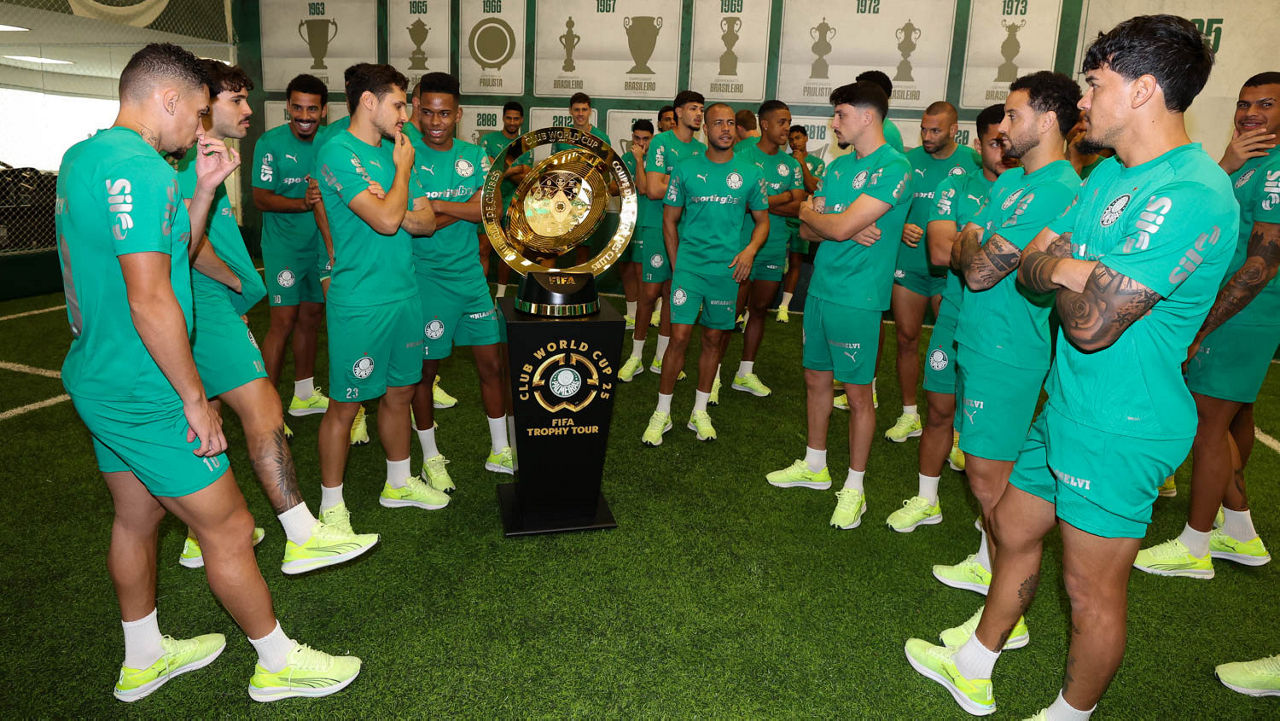 O dia começou com uma ‘visita’ especial. Após ter ficado exposta na Sala de Troféus, no Allianz Parque, na sexta-feira (09), a taça da Copa do Mundo de Clubes da Fifa 2025 passou pelo centro de treinamento alviverde e os jogadores palestrinos puderam vê-la de perto. No gramado, após um vídeo no vestiário, os atletas realizaram um trabalho tático sob o comando da comissão de Abel Ferreira. Na sequência, foi colocado em prática um descontraído recreativo e, por fim, alguns jogadores aprimoraram finalizações. Bruno Rodrigues, em transição física, e Felipe Anderson, preservado da partida contra o Cerro Porteño-PAR, pela CONMEBOL Libertadores, participaram das movimentações.