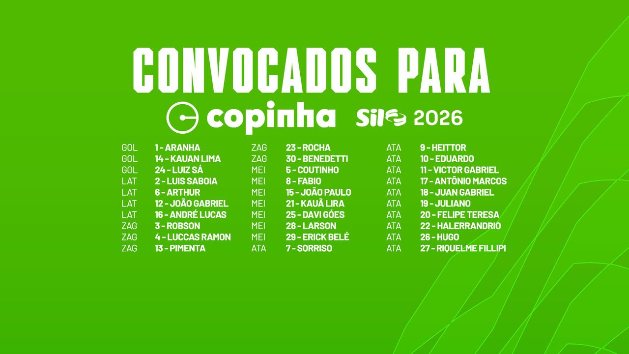 O Verdão divulga nesta sexta-feira (02) os 30 atletas inscritos para a disputa da edição de 2026 da Copa São Paulo de Futebol Júnior. O clube palestrino estreia no torneio na segunda-feira (05), contra o Monte Roraima-RR, às 19h30 (de Brasília), na Arena Crefisa Barueri.