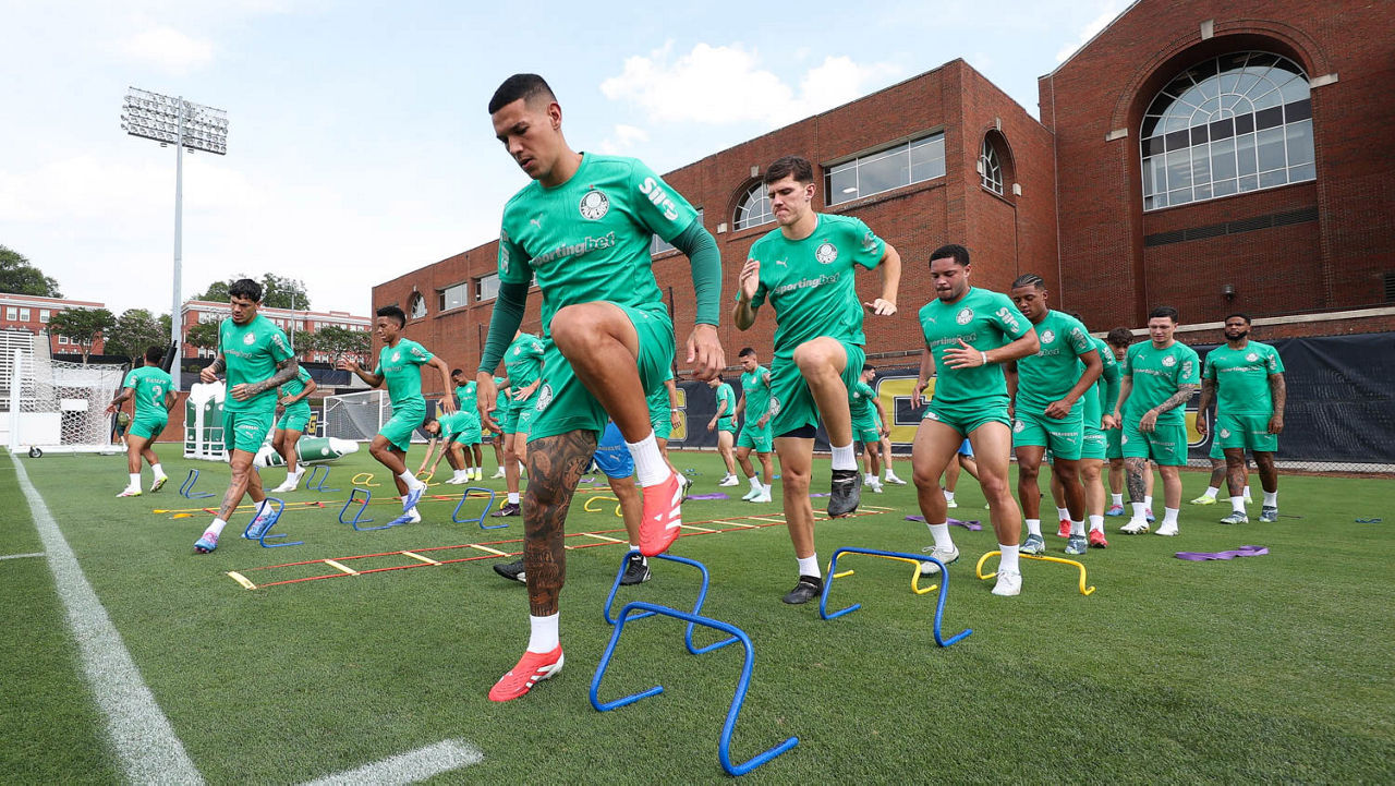 O Palmeiras realizou nesta quinta-feira (12), na Universidade da Carolina do Norte, em Greensboro (EUA), mais duas sessões de treinos antes da estreia na Copa do Mundo de Clubes da FIFA 2025. A primeira partida do Verdão será no domingo (15), às 19h (horário de Brasília), contra o Porto-POR, no MetLife Stadium, em Nova Jersey (EUA), e os outros adversários da primeira fase serão Al Ahly-EGI e Inter Miami-EUA.