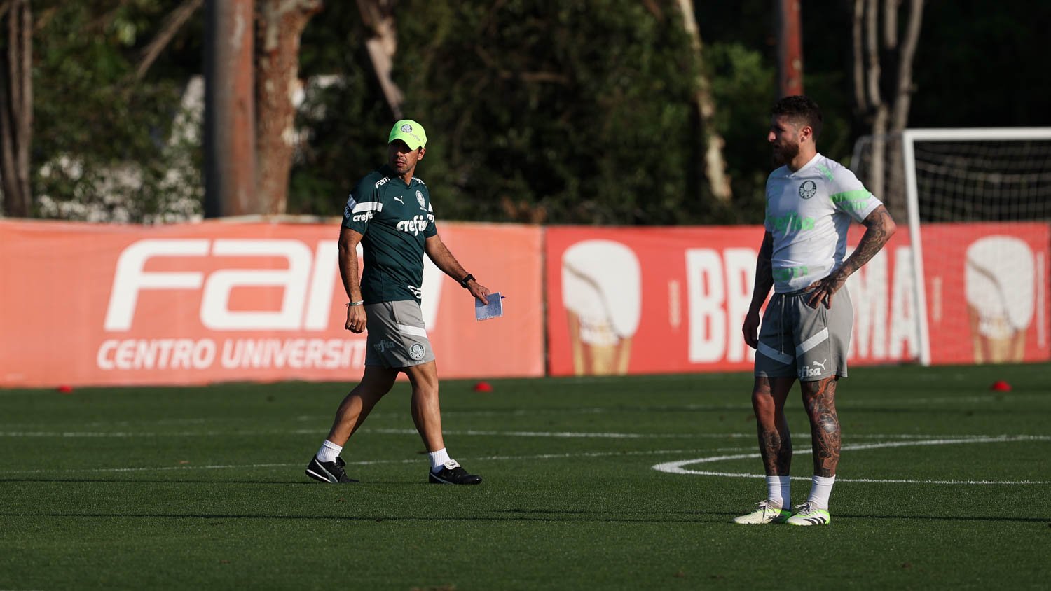 Abel Ferreira orientou um trabalho técnico-tático de construção de jogadas e finalizações. Veiga participou normalmente, enquanto Piquerez e Ríos realizaram um cronograma regenerativo com trabalhos na parte interna do centro de excelência e corrida ao redor do campo. O zagueiro Gustavo Gómez, na Seleção do Paraguai, deve retornar aos treinos com o restante do elenco na atividade desta quinta-feira (14), às 10h, na Academia de Futebol.