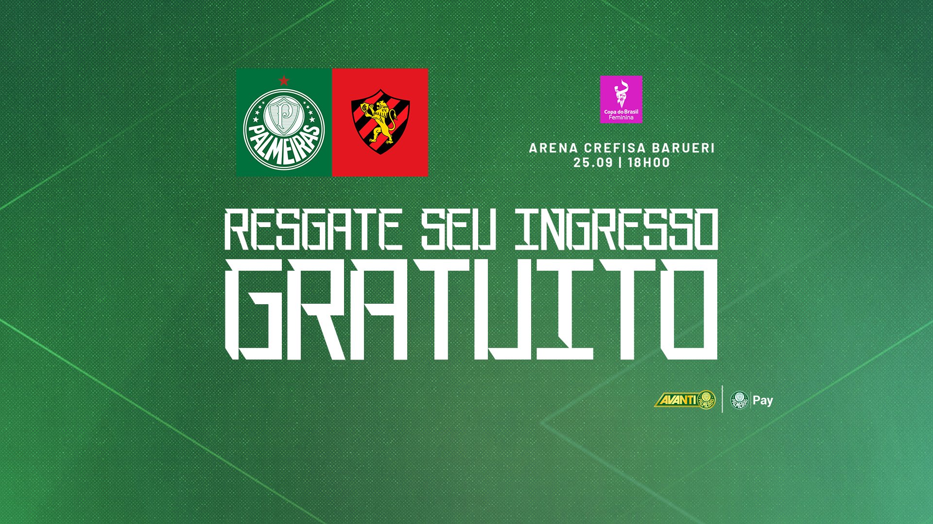 Pelas quartas de final da Copa do Brasil Feminina, o Palmeiras recebe o Sport, na próxima quinta-feira (25), às 18h, na Arena Crefisa Barueri. A entrada será gratuita e o resgate do ingresso poderá ser feito a partir desta quarta-feira (24), às 12h, pelo site palmeiras.soudaliga.com.br – o acesso será feito por meio de reconhecimento facial.