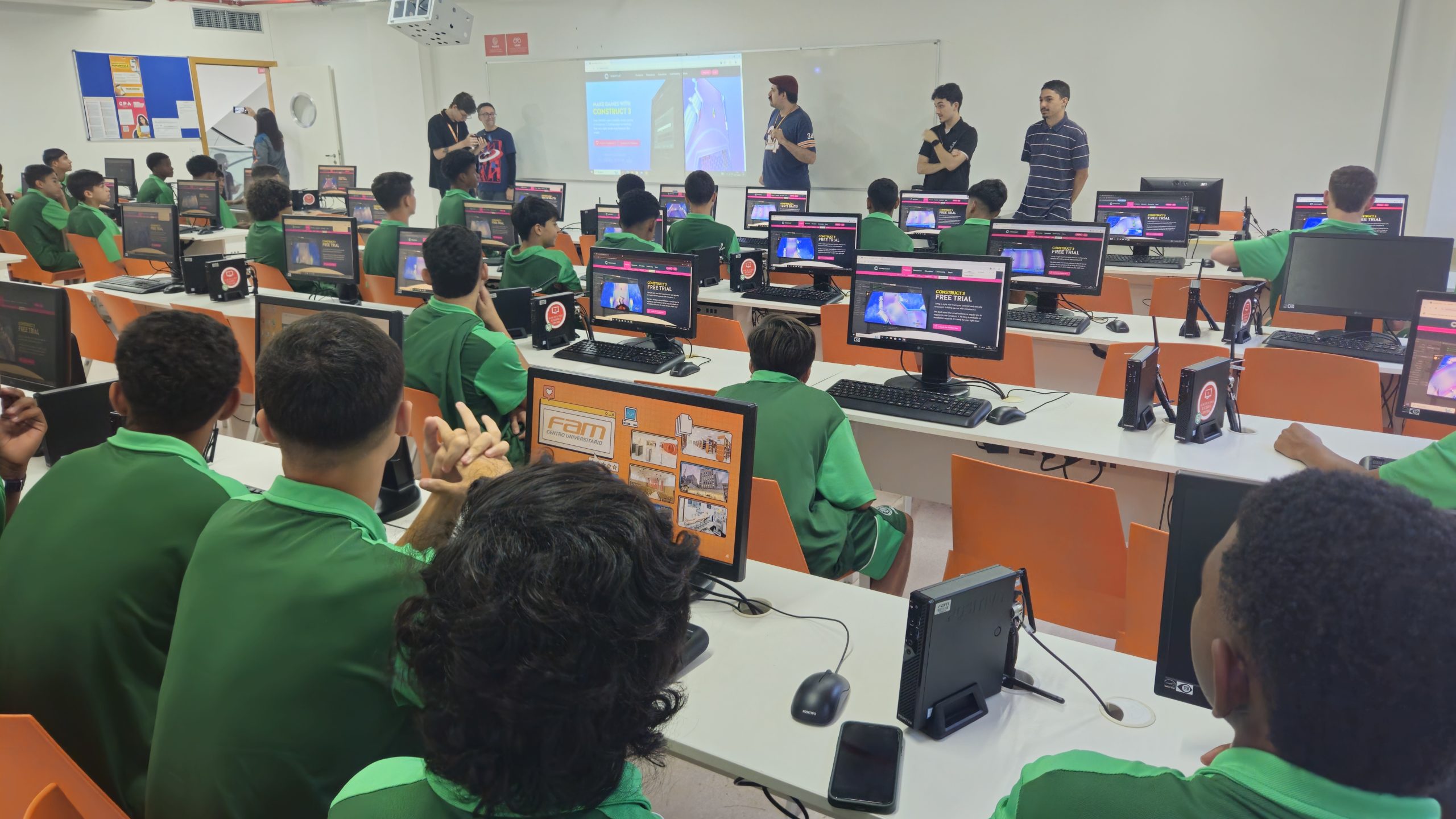 Nesta segunda-feira (11), atletas do Sub-13 e Sub-14 do Palmeiras visitaram a unidade da Mooca da Faculdade das Américas (FAM) para uma atividade prática com profissionais do curso de Design de Games, participando de uma oficina de construção de jogos digitais.