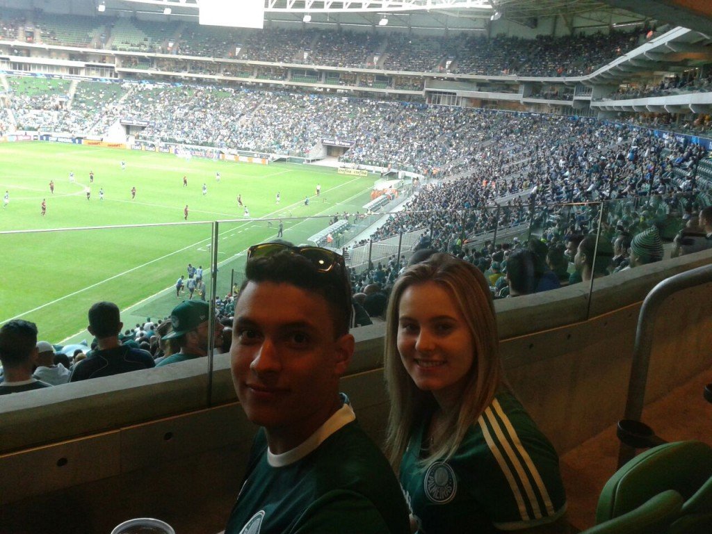 Assistir aos jogos do Palmeiras no Allianz Parque já é uma forte emoção para qualquer torcedor palestrino. De camarote, vira privilégio. Ao lado da namorada, mais ainda. Foi essa experiência que Cesar Rocha Ferreira, de 21 anos, pôde vivenciar no último sábado (14), quando foi surpreendido pela namorada Ana Carolina Salum, de 18 anos, e viu, de área exclusiva da Academia Store, o time alviverde triunfar por 4 a 0 sobre o Atlético-PR, em sua estreia no Campeonato Brasileiro de 2016.