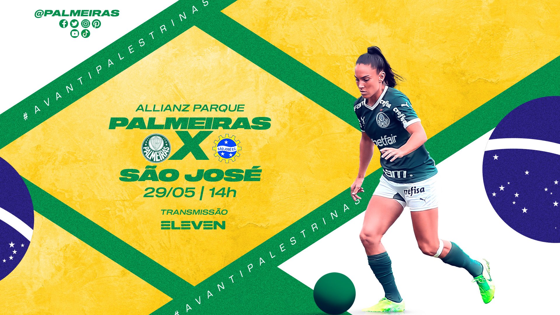 As Palestrinas enfrentam o São José no próximo domingo (29), às 14h, no Allianz Parque, pela décima rodada do Brasileiro Feminino. O duelo será transmitido pela Eleven Sports e os ingressos para a Família Palmeiras já estão à venda (clique aqui para mais informações).