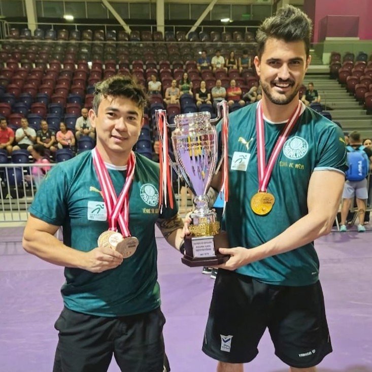A dupla do tênis de mesa, composta por Rodrigo Calabria e Rafael Nakamura, se sagrou vencedora do Campeonato Ibero-Sudamericano Master 2026 com a Seleção Brasileira. O torneio foi realizado entre os dias 29 de março e 3 de abril, em Lima, no Peru.