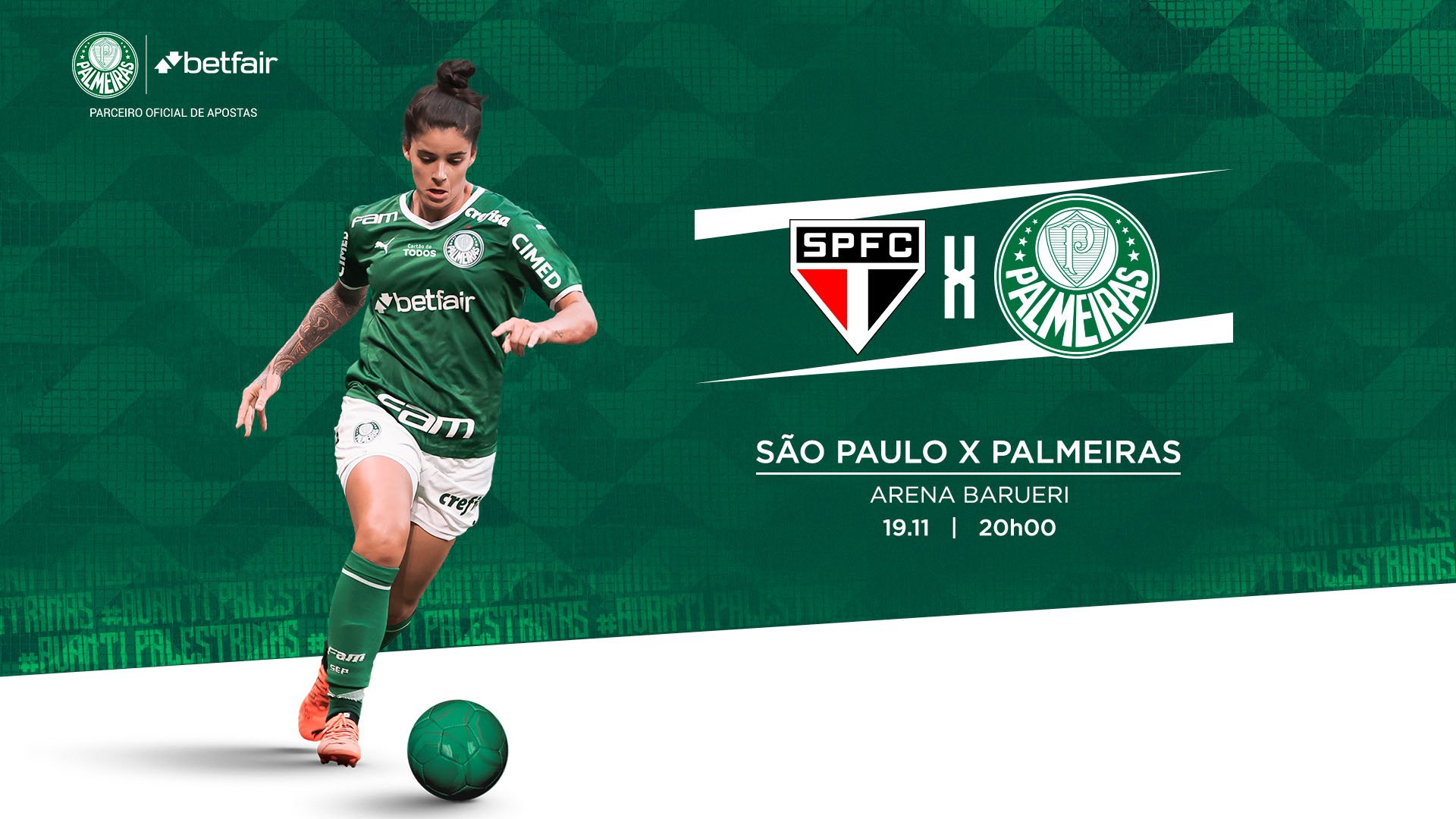 O Palmeiras vai jogar contra o São Paulo na noite deste sábado (19), às 20h, pela décima rodada do Paulista Feminino. Disputada na Arena Barueri e com mando do rival, a partida terá torcida única e pode ser acompanhada ao vivo pelo Estádio TNT Sports e pelo YouTube e a plataforma de streaming do Paulistão.