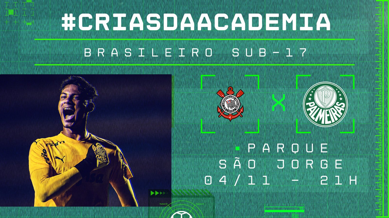 O time Sub-17 do Palmeiras mede forças com o Corinthians em Derby marcado para esta quarta-feira (04), às 21h, no Parque São Jorge, pela sétima rodada do Campeonato Brasileiro. O clássico será exibido pela CBF TV (MyCujoo) e você pode acompanhá-lo na home do site do Verdão.