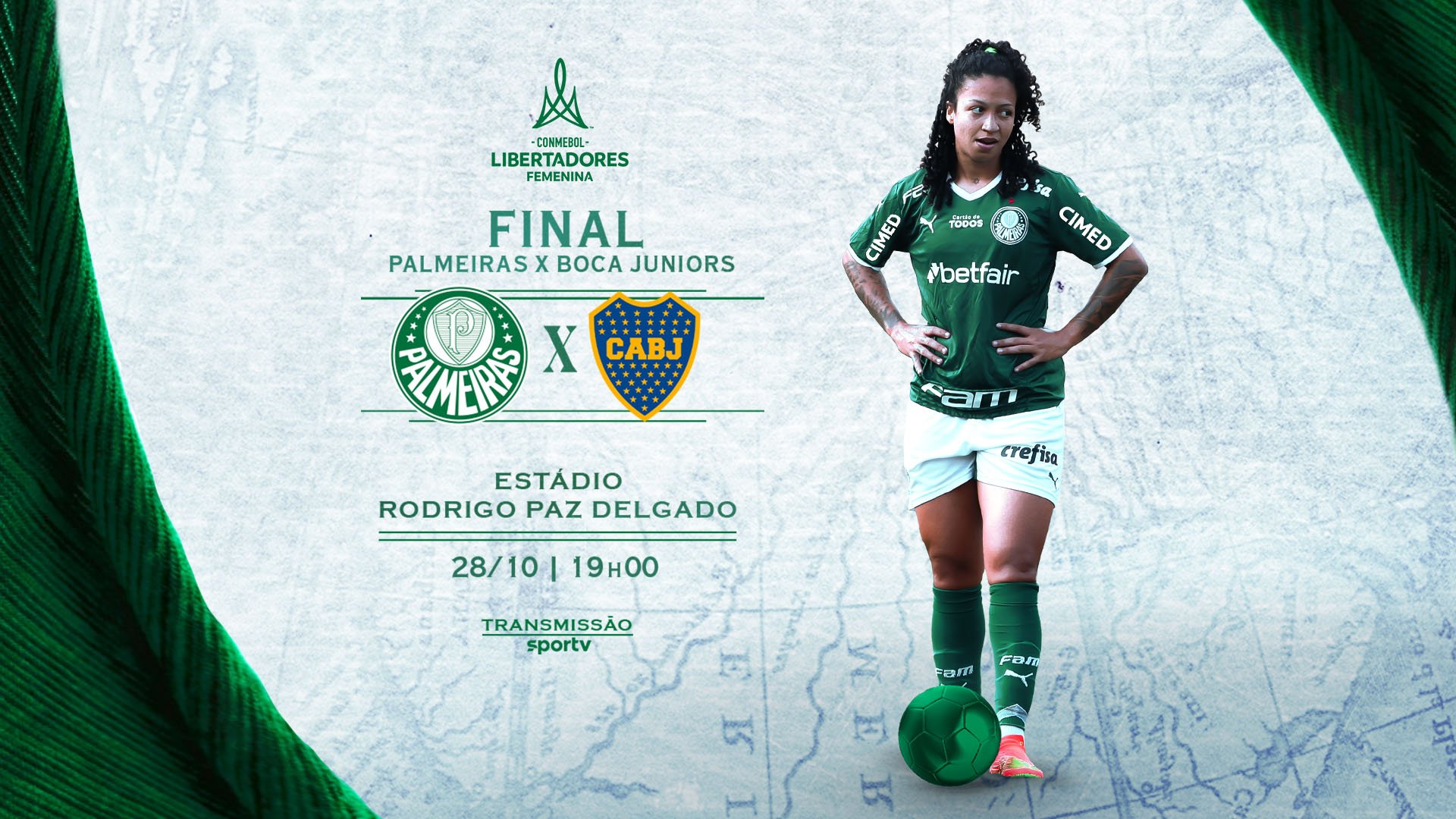 Em busca da Glória Eterna, o Palmeiras enfrenta o Boca Juniors-ARG na final da CONMEBOL Libertadores Feminina na noite desta sexta-feira (28), às 19h, no Estádio Rodrigo Paz Delgado, em Quito, no Equador. A torcida alviverde pode acompanhar o duelo pelo SporTV, pela Pluto TV ou pela página oficial da CONMEBOL no Facebook.