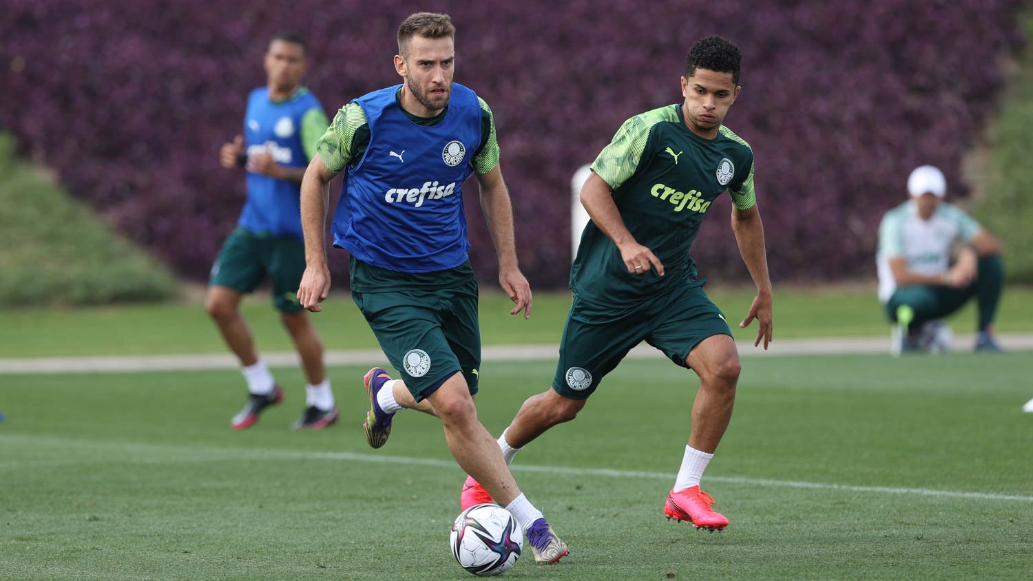 O atacante Wesley, em estágio de transição física, atuou nas duas movimentações no campo como curinga. Já Gabriel Veron, na lateral do gramado, cumpriu cronograma com os profissionais do Núcleo de Saúde e Performance.