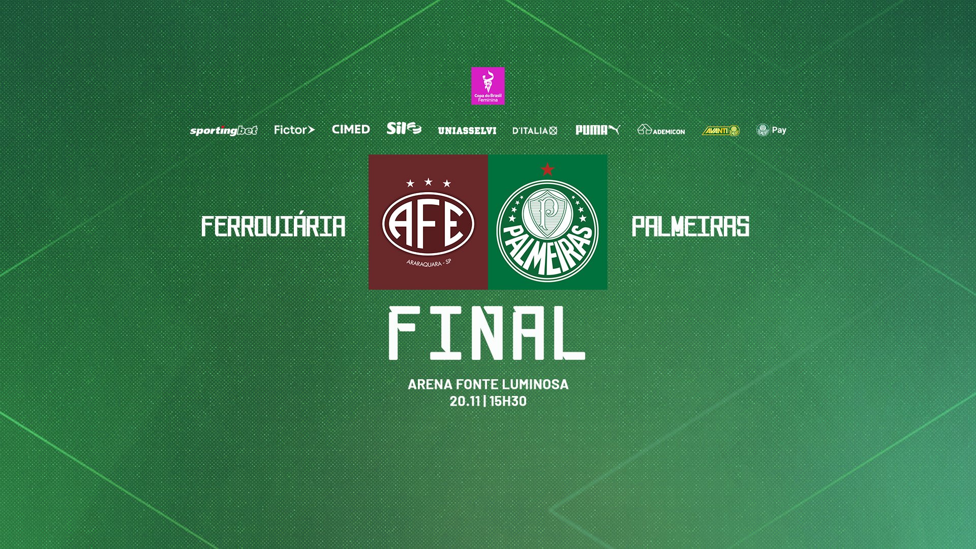 O Palmeiras busca o primeiro título nacional no futebol feminino, na tarde desta quinta-feira (20), às 15h30, contra a Ferroviária, na final da Copa do Brasil, na Arena Fonte Luminosa, em Araraquara-SP. A finalíssima será transmitida ao vivo pelo SporTV, TV Globo e NSports.