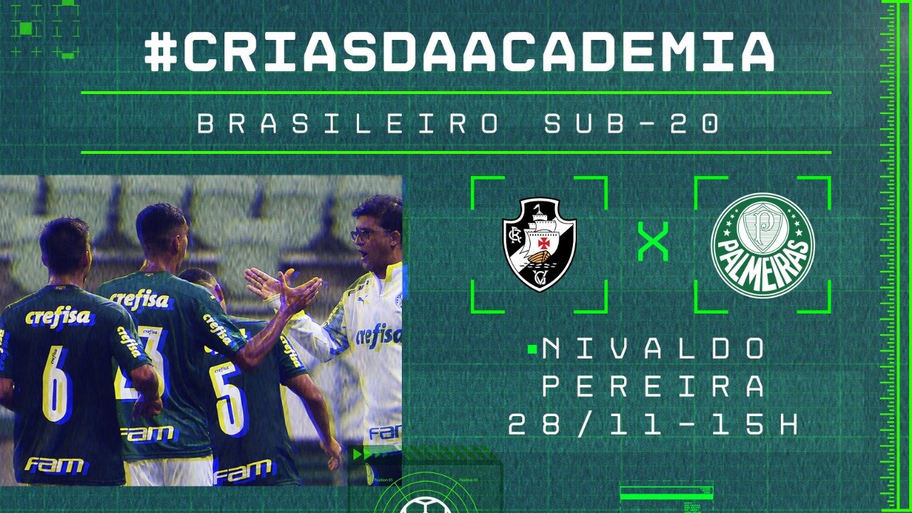 A equipe Sub-20 do Palmeiras enfrenta o Vasco da Gama neste sábado (28), às 15h, no estádio Nivaldo Pereira, em Nova Iguaçu-RJ, pela 15ª rodada do Campeonato Brasileiro da categoria. O duelo será transmitido pela CBF TV (MyCujoo) e exibido na home do site oficial do Verdão.