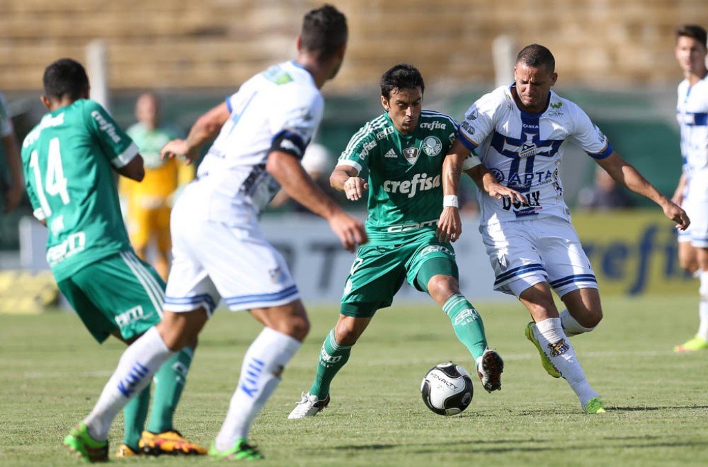 O Verdão era melhor na partida, tinha mais volume de jogo e criava mais no ataque. A marcação adiantada dificultava a saída de bola do Água Santa.