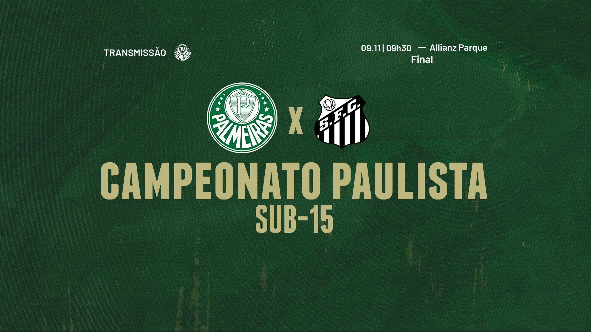 O time Sub-15 do Palestra terá pela frente o Santos, neste sábado (09), às 09h30 (de Brasília), no Allianz Parque, na partida de volta da final do Campeonato Paulista da categoria. O confronto terá transmissão da TV Palmeiras/FAM.