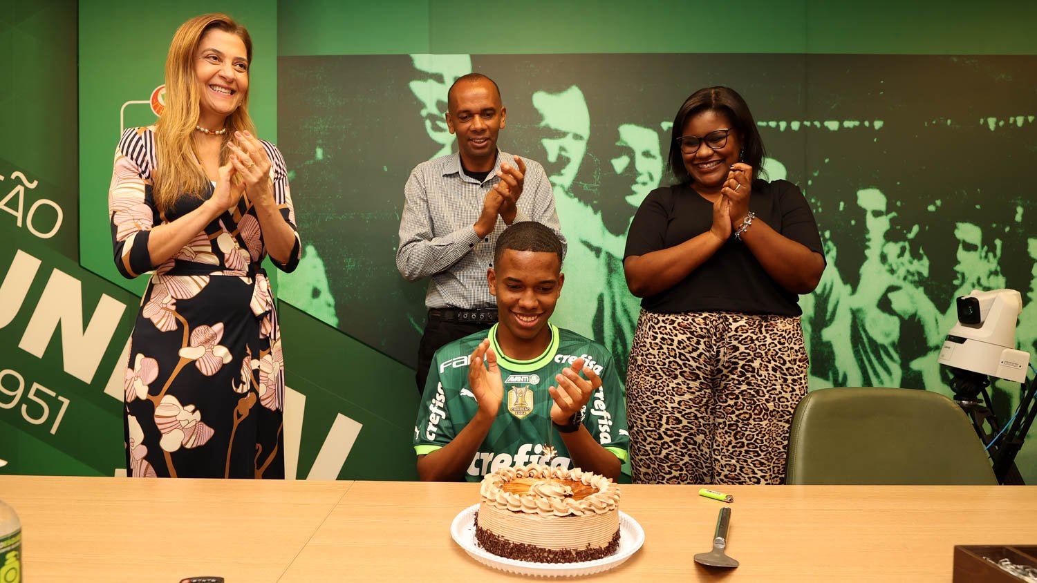 “Hoje é um dia muito especial na minha vida. Agradeço ao Palmeiras, aos meus representantes e à minha família, por sempre estarem do meu lado”, disse o jovem, que foi presenteado com um bolo de aniversário após a assinatura do vínculo, na Academia de Futebol. “O Palmeiras é um clube gigante, que oferece toda a estrutura necessária para os seus atletas, e o meu maior objetivo é conquistar muitos títulos pelo clube.”