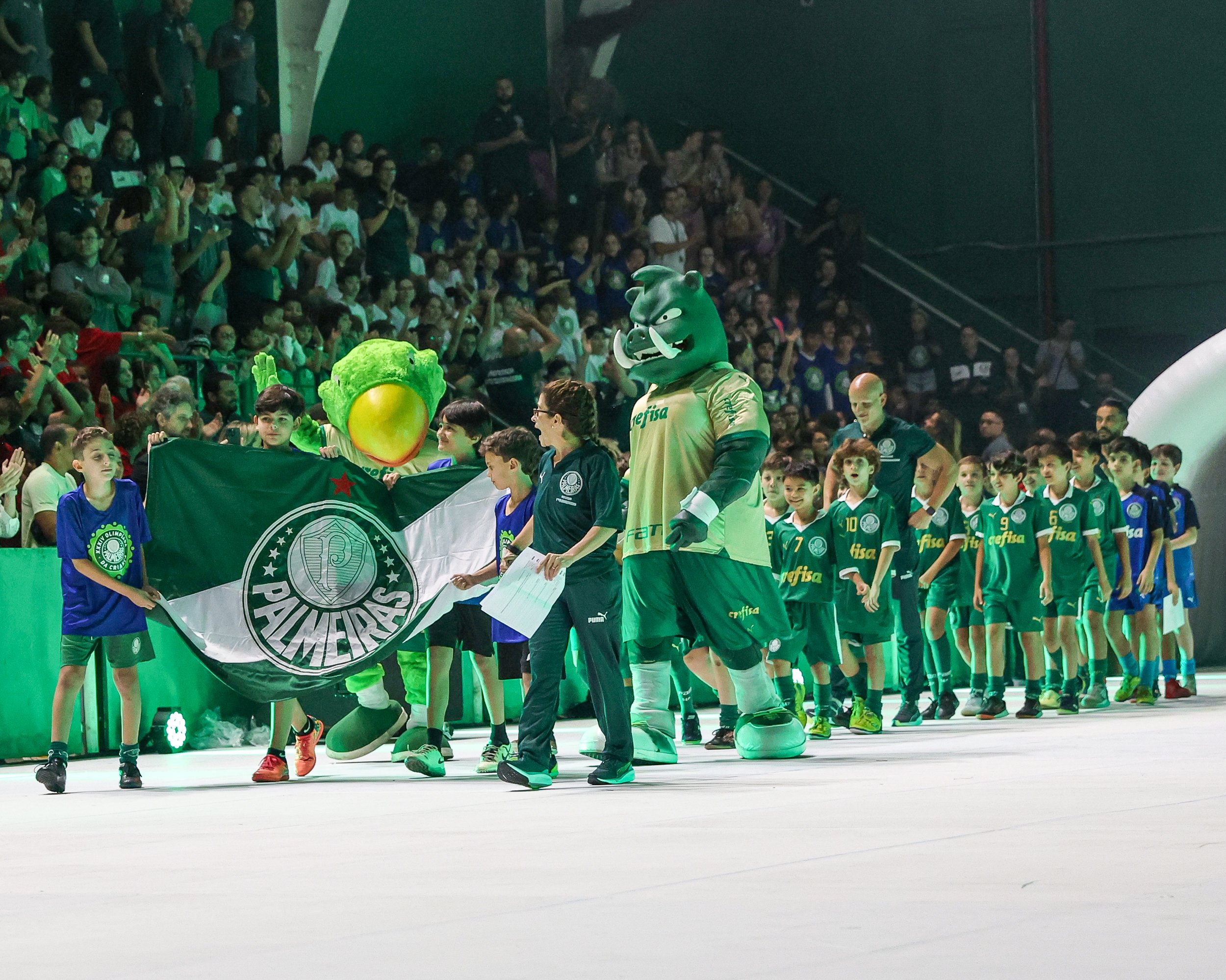 A bandeira palmeirense entrou no ginásio acompanhada dos mascotes Periquito e Gobbato, seguidos por crianças representando suas equipes (azul, vermelho, verde e branco). As apresentações artísticas e esportivas tiveram início logo depois, protagonizadas por alunos e atletas do Palmeiras.