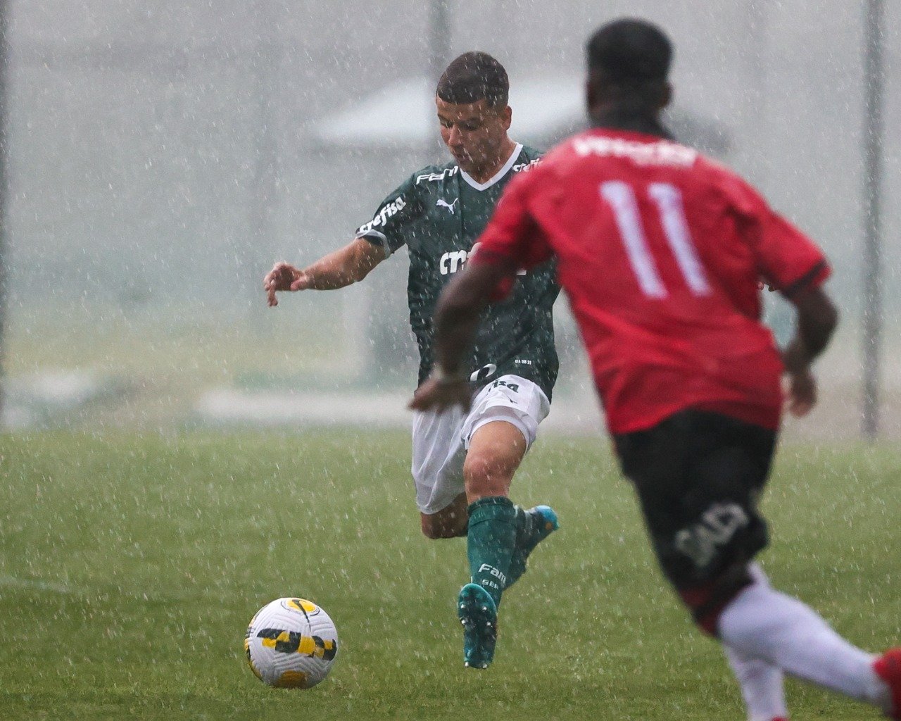 O jogo entre Palmeiras e Brasil de Pelotas-RS, neste domingo (09), foi paralisado no intervalo devido à forte chuva que caiu sobre a Academia de Futebol 2, em Guarulhos. A CBF definiu que o segundo tempo da partida será realizado às 15h (de Brasília) desta segunda-feira.