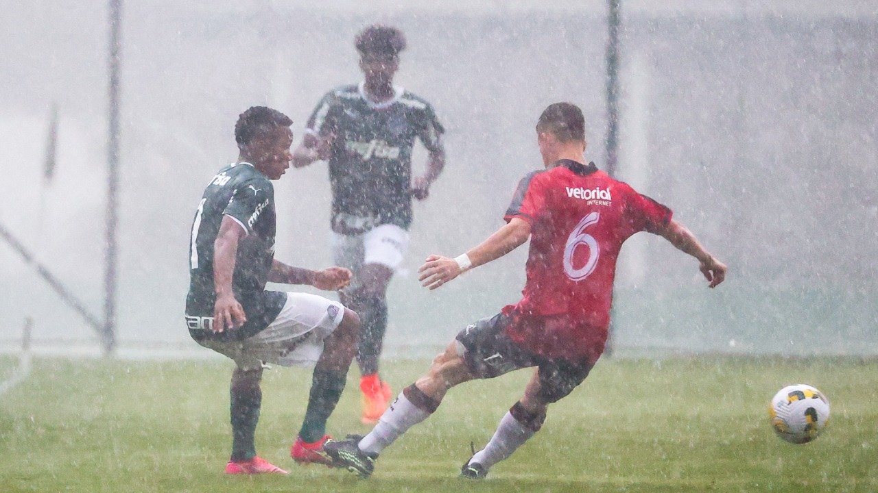 O jogo entre Palmeiras e Brasil de Pelotas-RS, neste domingo (09), foi paralisado no intervalo devido à forte chuva que caiu sobre a Academia de Futebol 2, em Guarulhos. A CBF definiu que o segundo tempo da partida será realizado às 15h (de Brasília) desta segunda-feira.