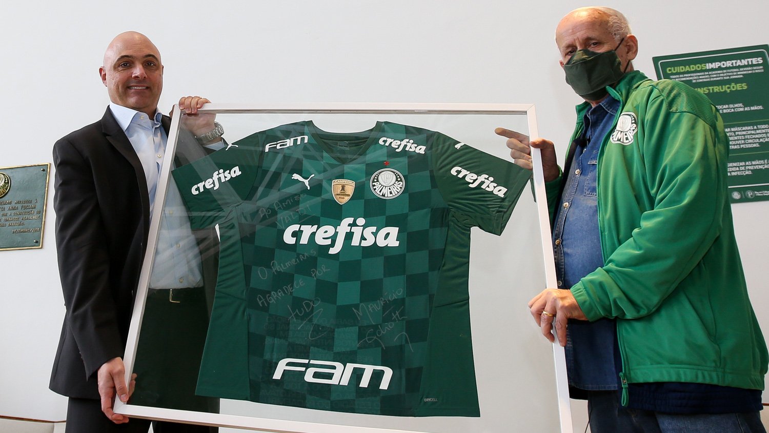 O presidente Mauricio Galiotte ainda entregou um quadro com uma camisa personalizada com seu nome e o número 54, representando os anos de Palmeiras.