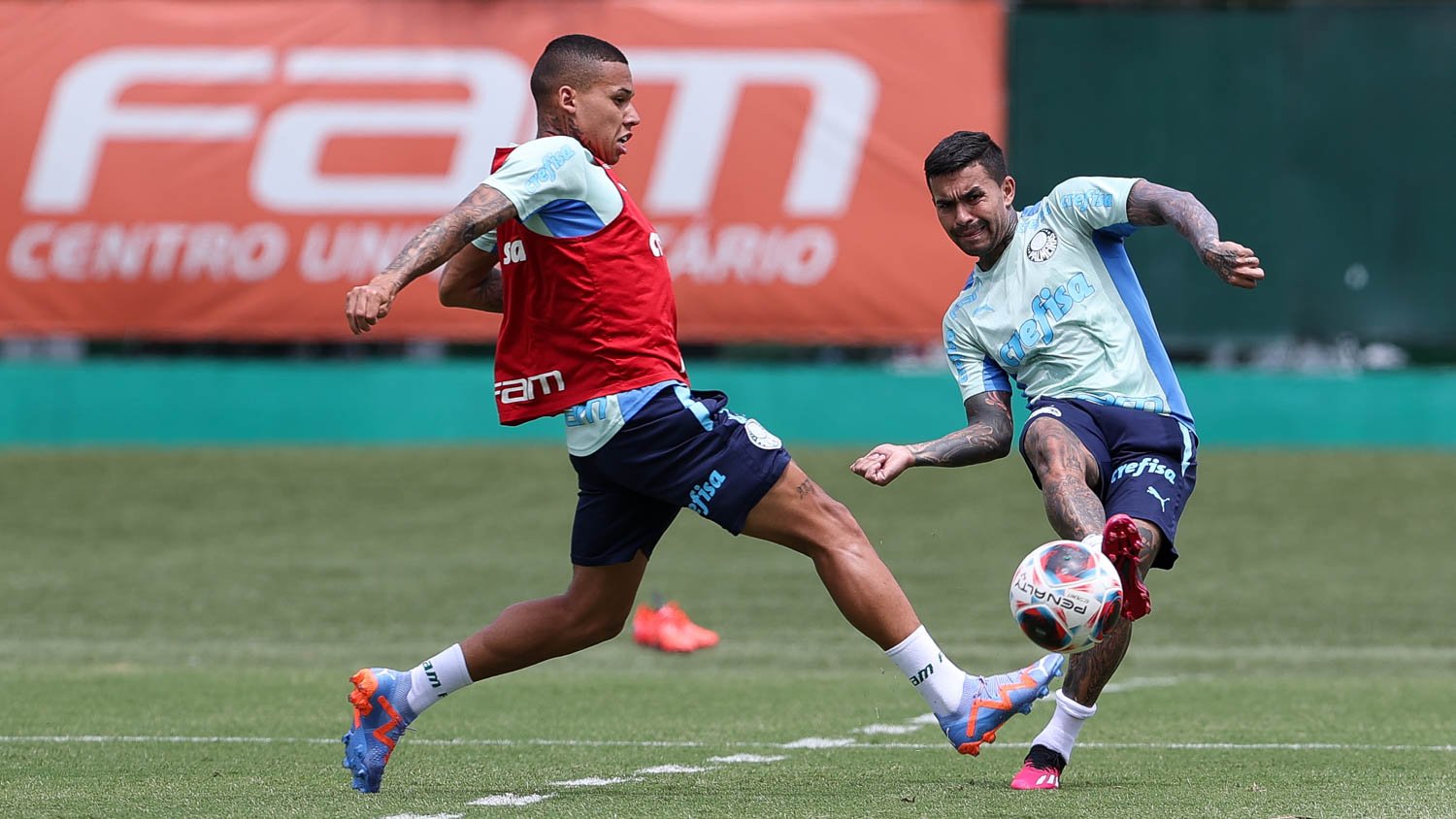 O Palmeiras treinou nesta quinta-feira (02), na Academia de Futebol, visando o clássico contra o Santos, sábado (04), às 18h30, no Morumbi, pela 6ª rodada do Campeonato Paulista – a delegação retornou nesta madrugada de Mirassol (SP), horas após derrotar o time local por 2 a 0, e passou a noite no centro de excelência. Os jogadores que atuaram por mais de 45 minutos cumpriram cronograma de atividades regenerativas na parte interna, enquanto os demais foram a campo junto aos atletas preservados da viagem. O treino teve trabalhos táticos e técnicos: inicialmente um posicional de construção de jogo, seguido de jogos de sete contra sete em campo reduzido. Ao final, os atacantes fizeram um trabalho de ações ofensivas no último terço.