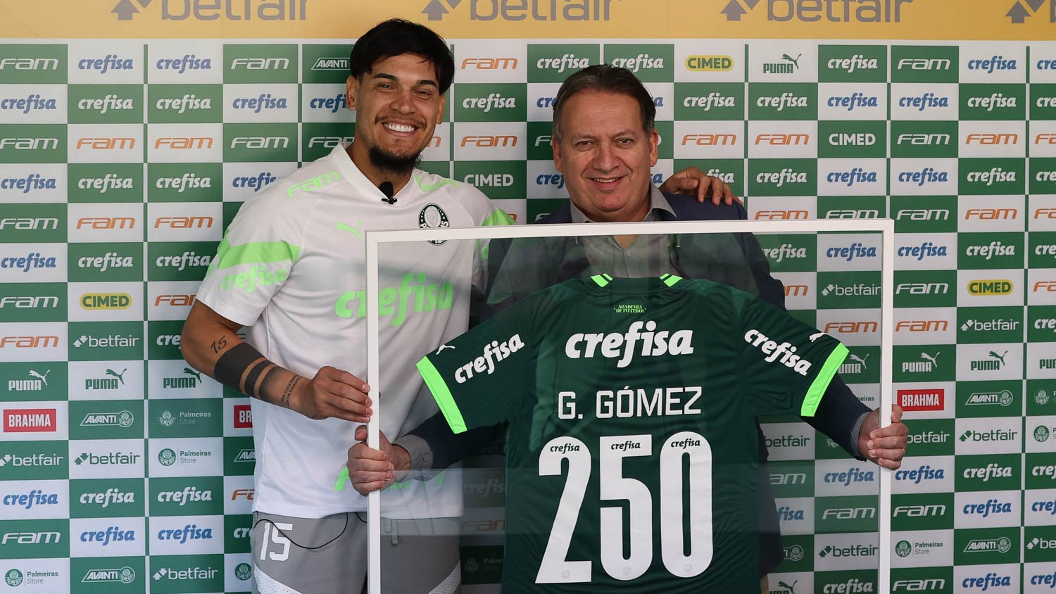 O zagueiro Gustavo Gómez, que completou 250 jogos com a camisa palestrina diante do Botafogo, foi homenageado pelo clube. Capitão com mais títulos na história do Palmeiras (sete, ao lado de Ademir da Guia), o jogador recebeu do vice-presidente Paulo Buosi uma placa e uma camisa em referência à marca.