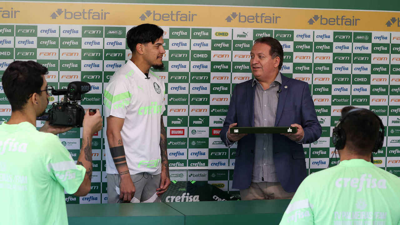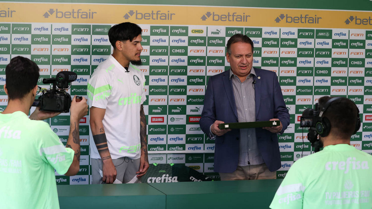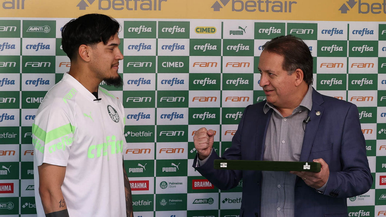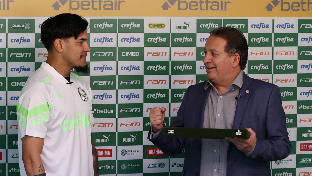 O zagueiro Gustavo Gómez, que completou 250 jogos com a camisa palestrina diante do Botafogo, foi homenageado pelo clube. Capitão com mais títulos na história do Palmeiras (sete, ao lado de Ademir da Guia), o jogador recebeu do vice-presidente Paulo Buosi uma placa e uma camisa em referência à marca.