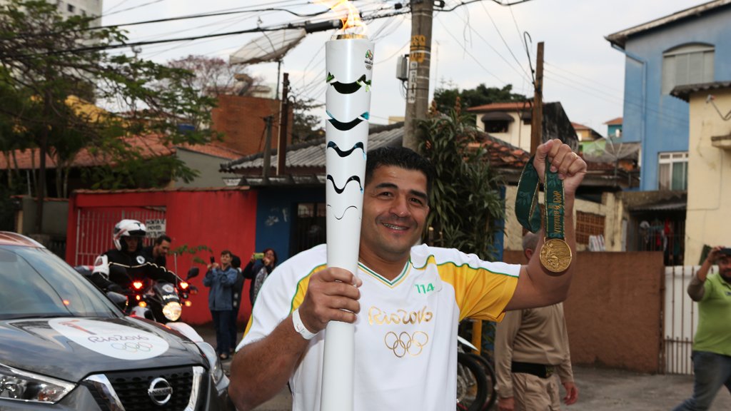 Henrique Guimarães conduz a Tocha Olímpica vinte anos após medalha histórica