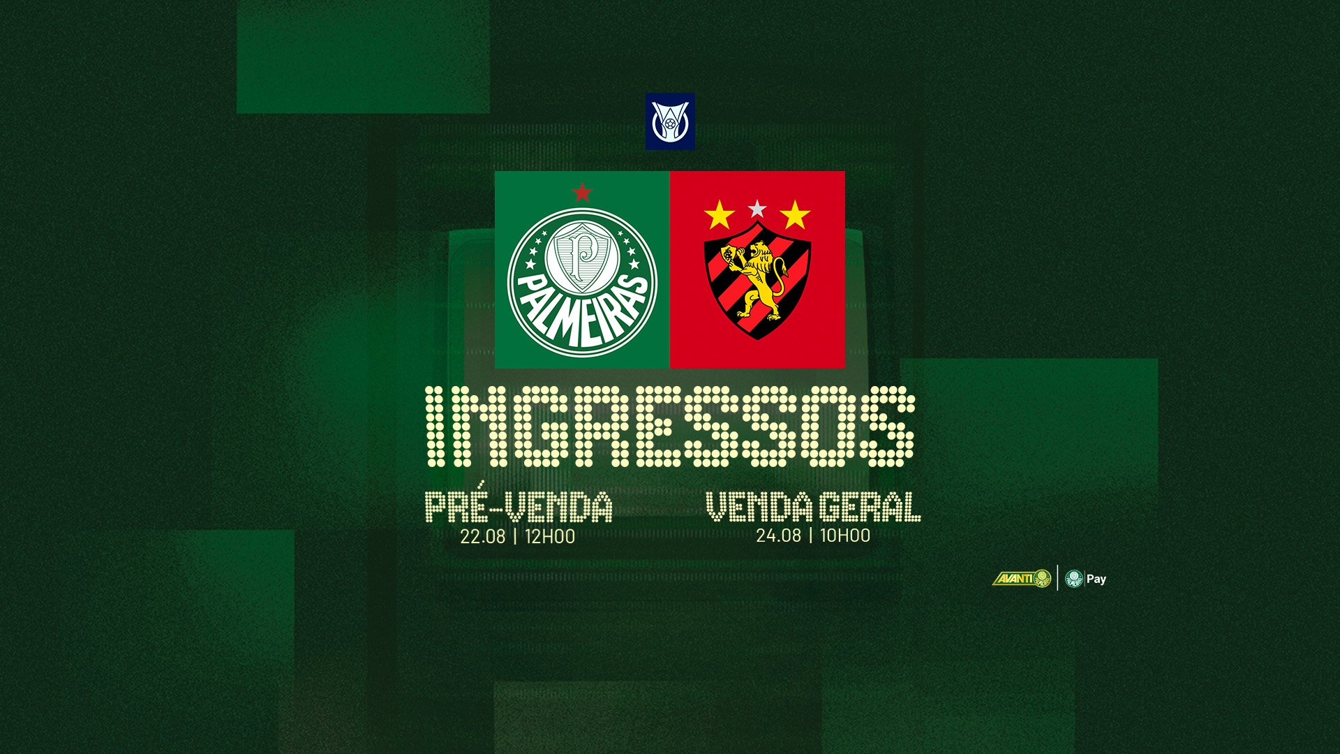 Os ingressos para o jogo contra o Sport, que ocorrerá na segunda-feira (25), às 19h, no Allianz Parque, pela 21ª rodada do Campeonato Brasileiro, estarão à venda exclusivamente para os sócios-torcedores Avanti a partir de sexta (22), às 12h, por meio do site www.ingressospalmeiras.com.br.