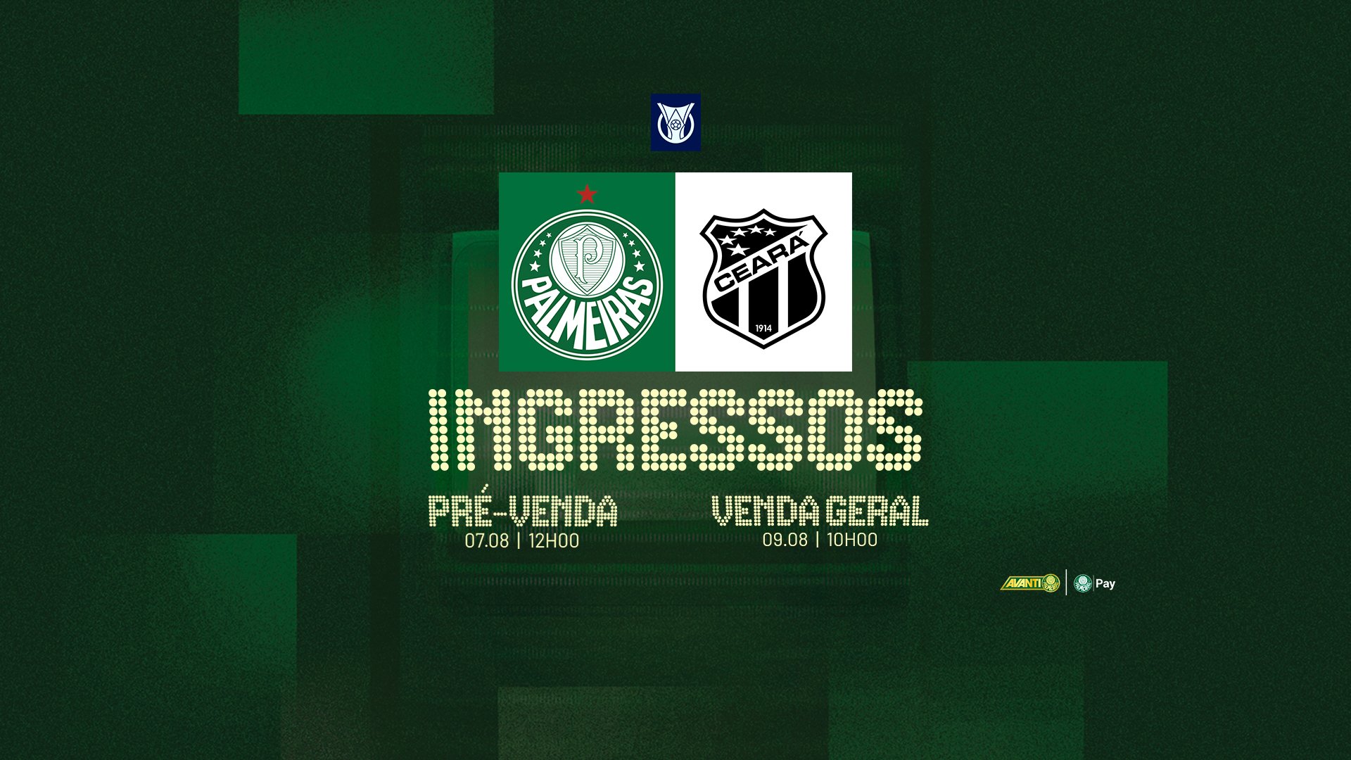 Os ingressos para o jogo contra o Ceará, que ocorrerá no domingo (10), às 16h, no Allianz Parque, pela 19ª rodada do Campeonato Brasileiro, estarão à venda exclusivamente para os sócios-torcedores Avanti a partir de quinta-feira (07), às 12h, por meio do site www.ingressospalmeiras.com.br.
