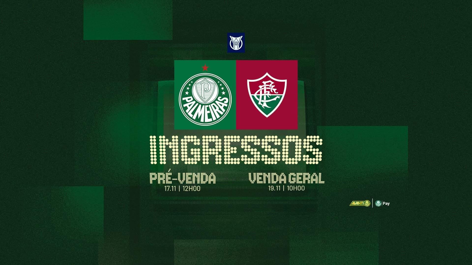 Os ingressos para o jogo contra o Fluminense, que ocorrerá no sábado (22), às 21h30, no Allianz Parque, pela 35ª rodada do Campeonato Brasileiro, estarão à venda exclusivamente para os sócios-torcedores Avanti a partir de segunda (17), às 12h, por meio do site www.ingressospalmeiras.com.br.