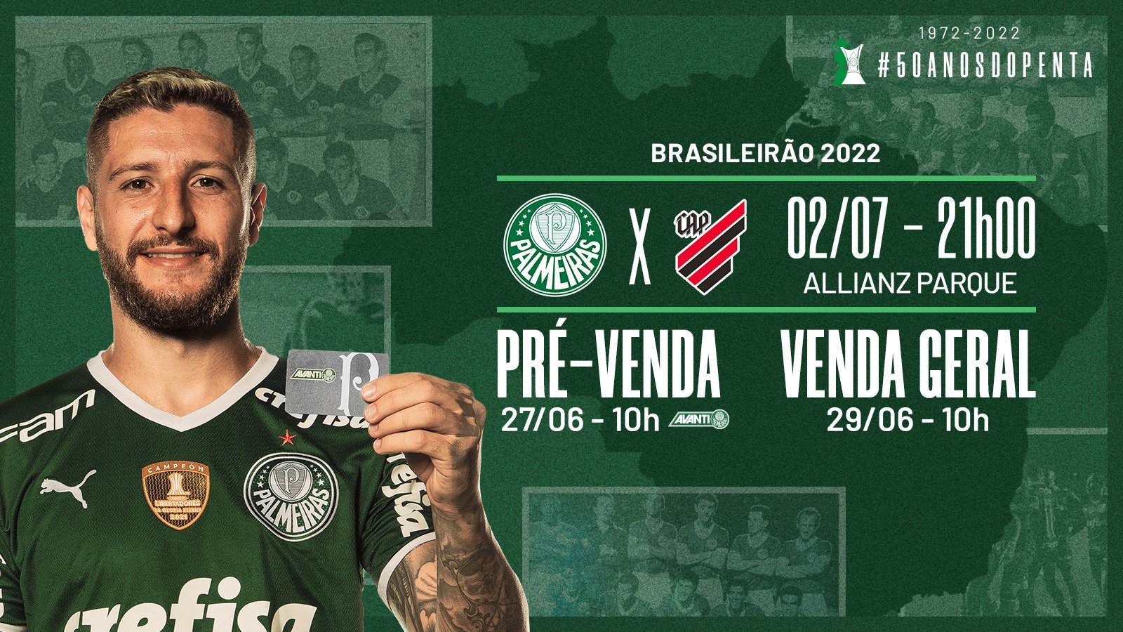 Os ingressos para o duelo com o Athletico-PR, que ocorrerá no sábado (02), às 21h, no Allianz Parque, pela 15ª rodada do Campeonato Brasileiro, têm preço mínimo de R$ 90 e estão à venda para todos os torcedores por meio do site www.ingressospalmeiras.com.br.