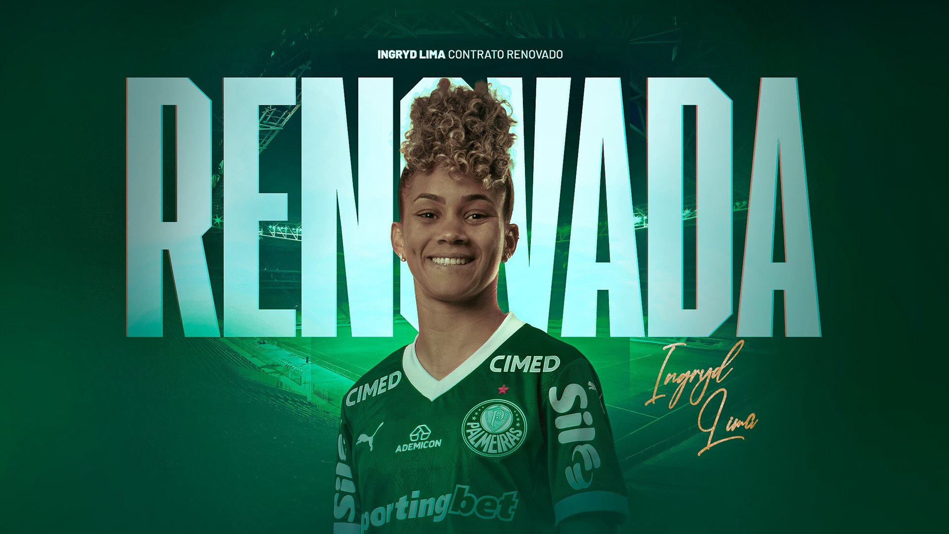 A meio-campista Ingryd Lima renovou contrato com o Palmeiras, nesta quarta-feira (17), e vai para sua terceira temporada no futebol feminino do clube.