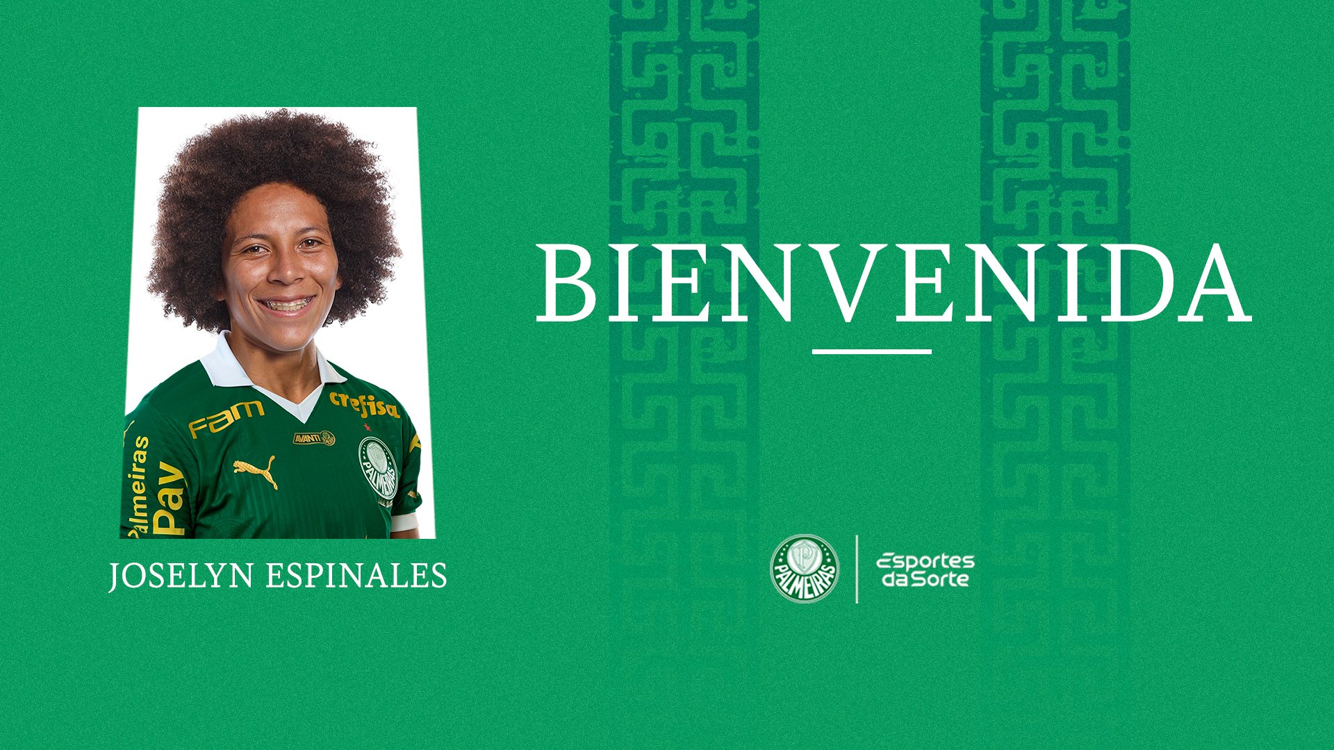 A meio-campista equatoriana Joselyn Espinales é a nova contratação anunciada pelo Palmeiras nesta segunda-feira (12). A jogadora é a 17ª atleta a reforçar o time feminino para a temporada de 2024.