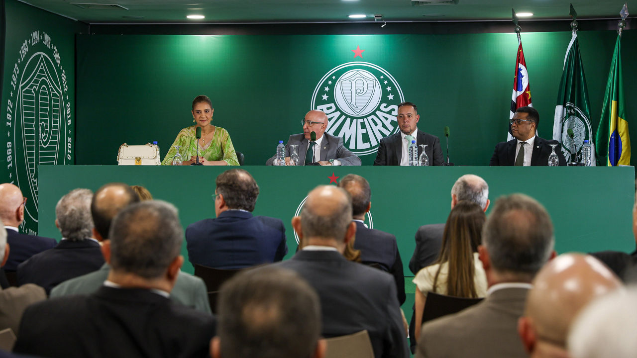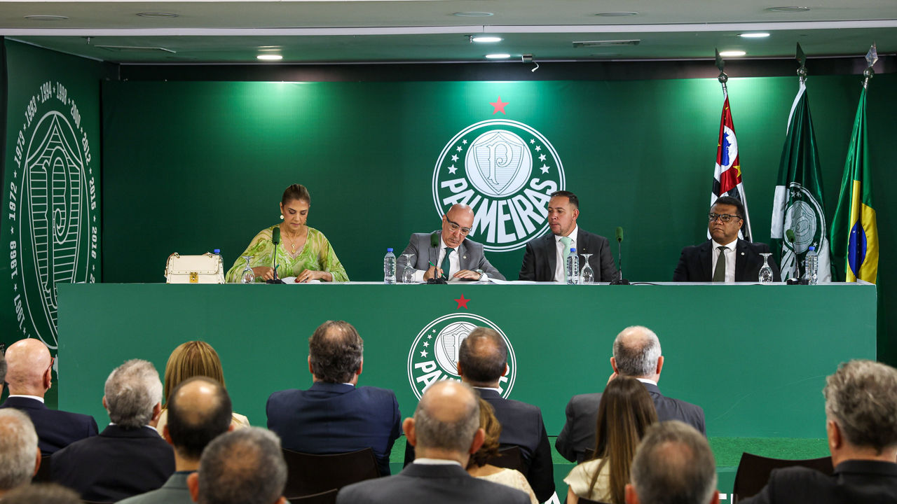 Em cerimônia realizada neste domingo (15) no clube social, a presidente Leila Pereira assinou o termo de posse e iniciou oficialmente o seu segundo mandato à frente do Palmeiras. A primeira mulher a presidir o Maior Campeão do Brasil foi reeleita com 73,2% dos votos dos associados em assembleia ocorrida no dia 24 de novembro, no ginásio poliesportivo.