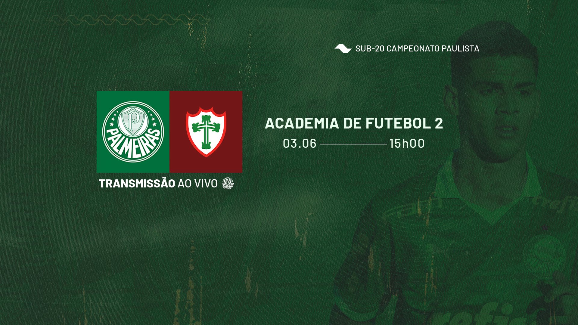 O time Sub-20 do Verdão terá pela frente a Portuguesa, nesta segunda-feira (03), às 15h (de Brasília), na Academia de Futebol 2, em Guarulhos, pela oitava rodada da primeira fase do Campeonato Paulista da categoria. O confronto terá transmissão da TV Palmeiras/FAM.