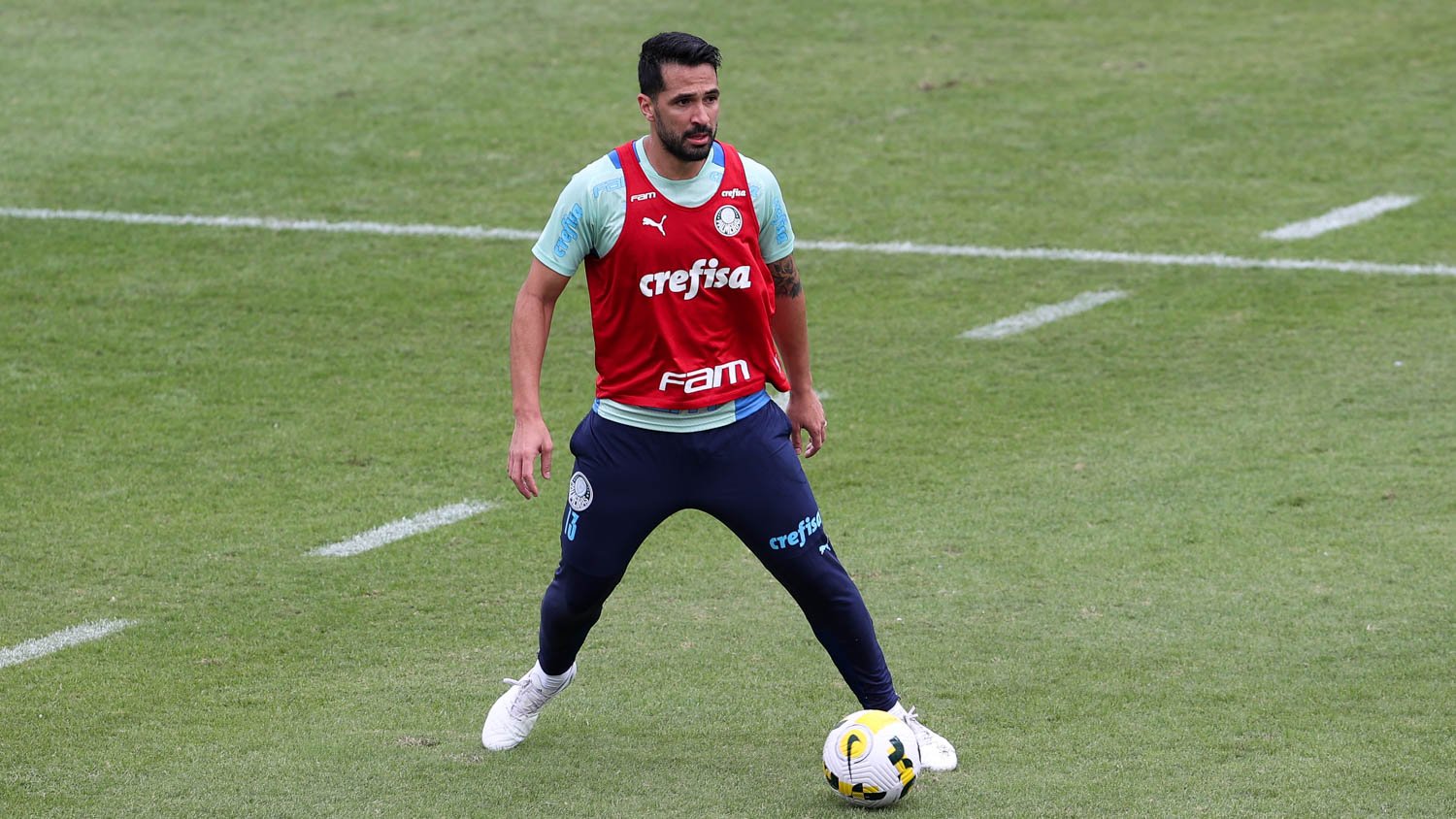 Além do camisa 13, a atividade inicial no gramado contou com atletas que entraram no decorrer do duelo com o Emelec-EQU, na noite de quarta (18), no Allianz Parque, pela CONMEBOL Libertadores, como Vanderlan, Zé Rafael, Raphael Veiga, Dudu e Breno Lopes, e de Crias do Sub-20: Carlinhos (lateral-direito), Ian Custódio (lateral-esquerdo), Pedro Lima (meio-campista), Breno (meio-campista) e Ruan Ribeiro (atacante). Na sequência, sem os primeiros citados, houve uma movimentação técnica em campo reduzido.