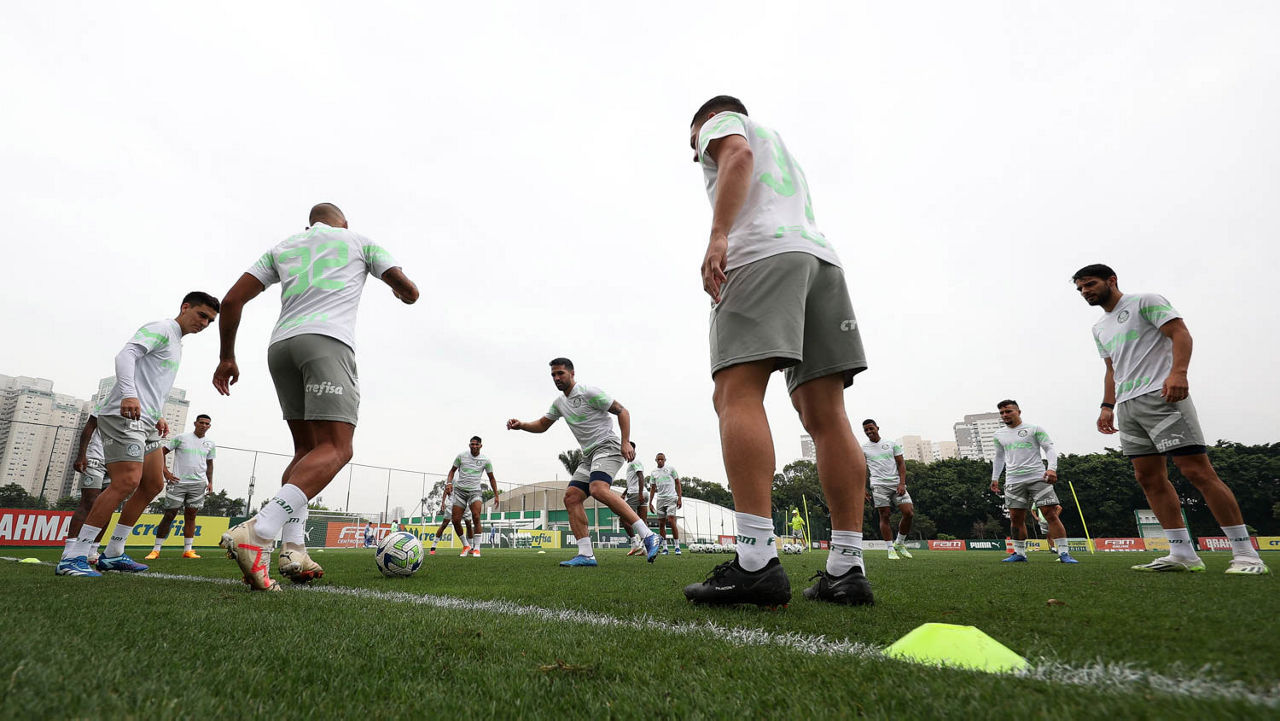 Após ter empatado com o Fortaleza por 2 a 2 no domingo (26), na capital cearense, o Palmeiras voltou a São Paulo (SP) na madrugada e treinou na manhã desta segunda-feira (27), na Academia de Futebol. Os titulares do confronto fizeram atividades regenerativas na parte interna do centro de excelência. O restante foi a campo e realizou movimentações técnicas em dimensões reduzidas, enquanto os goleiros trabalharam de forma específica com os preparadores da posição.