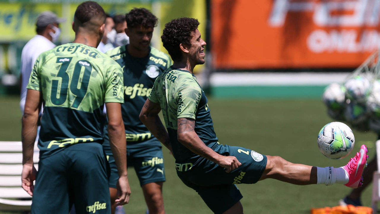 O técnico Abel Ferreira posicionou duas equipes completas em campo, orientou a movimentação e conversou individualmente com alguns atletas, além de ensaiar jogadas. Na sequência, os atletas disputaram um treino recreativo.